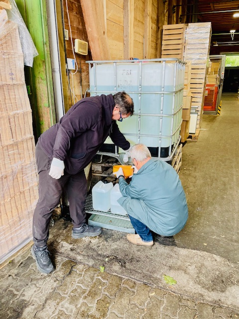 An zwei Samstagen haben liebenswerte Mitglieder unseres Vereins die Sammelbestellungen bei Bienenzuchtbedarf Geller abgefüllt, aufgeladen und ausgeliefert. An beiden Tagen wurden insgesamt 3.200 kg abgefüllt